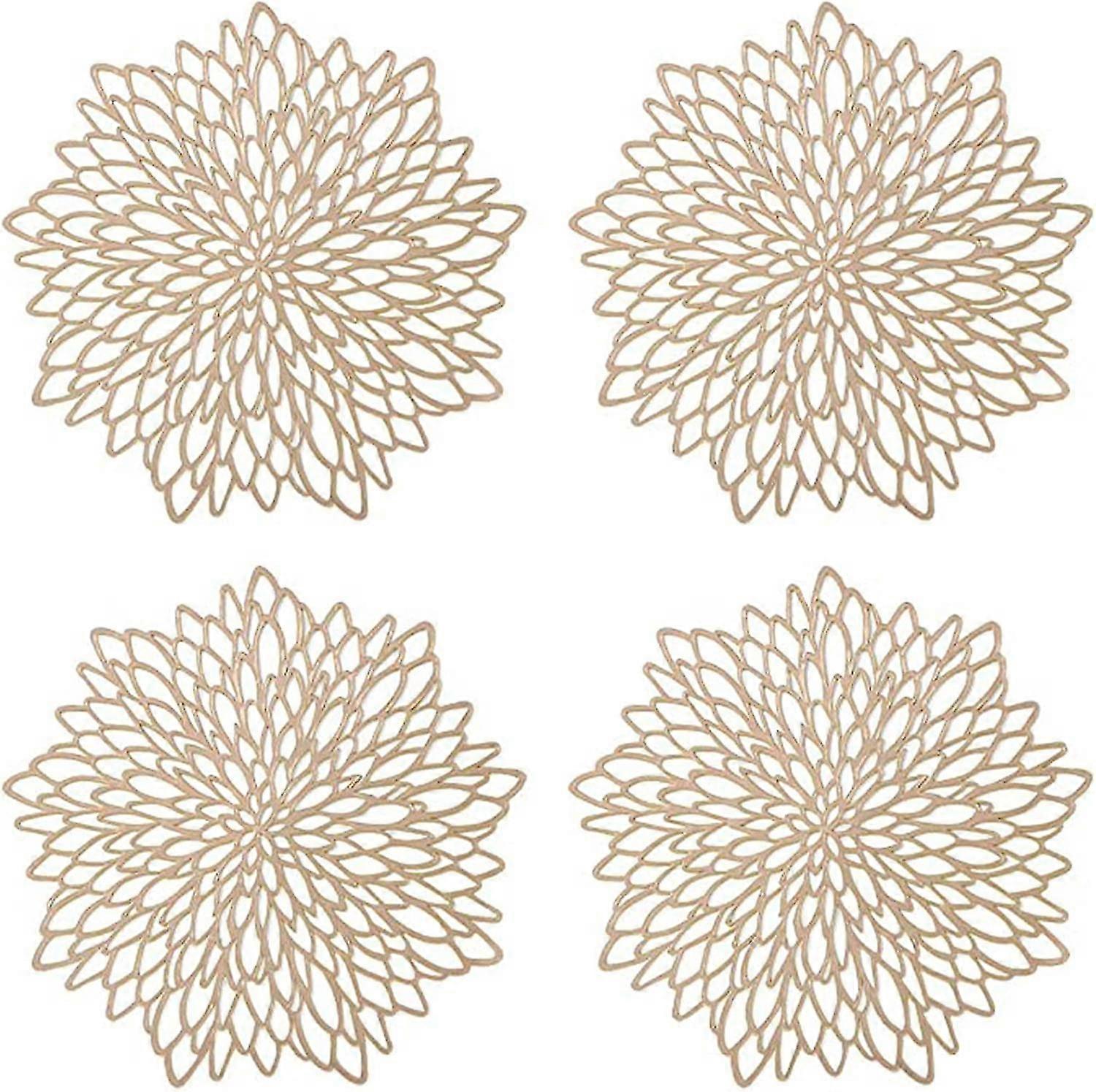 4 Pieces Gold Placemat, Hollow Out Round Placemat, Round Placemats Plastic Table Mat, Used For Heat Insulation Of Plate And Table Decoration (gold)