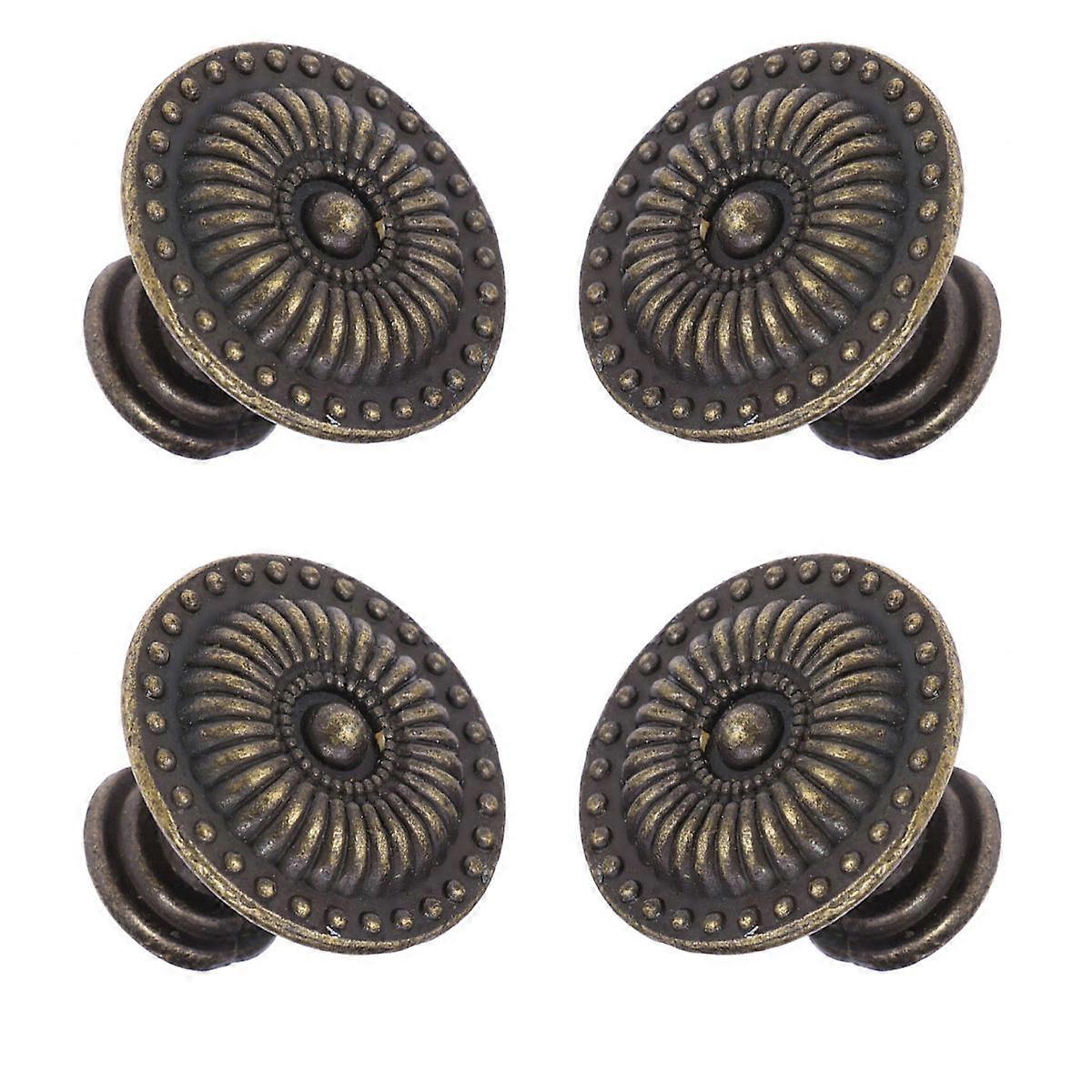 4pcs Vintage Brass Cabinet Knobs, Classic European Style Single Hole Handle for Cupboards