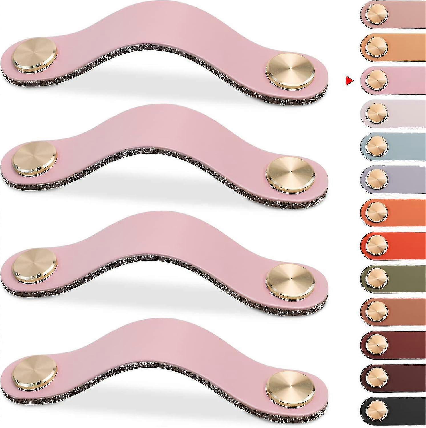 4pcs Leather Furniture Handle, Cupboard Door Knob Leather Handle Drawer Knob, Vintage Furniture Handle For Cabinets, Dresser, Kitchen(pink, 128mm) (x