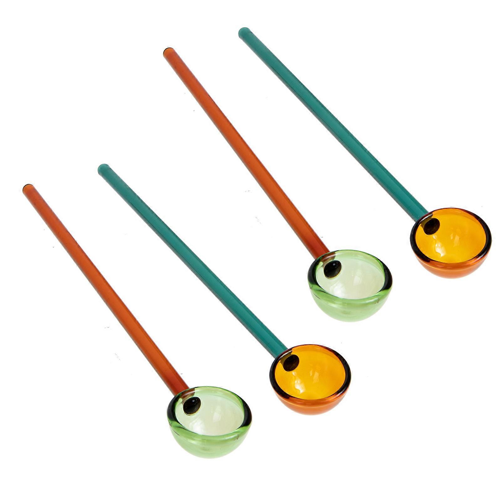 4 Pcs Heat Resistant Glass Soup Spoons Transparent Stirring Spoons for Coffee, Milk, Dessert & Food Serving Lightweight with Long Handles and