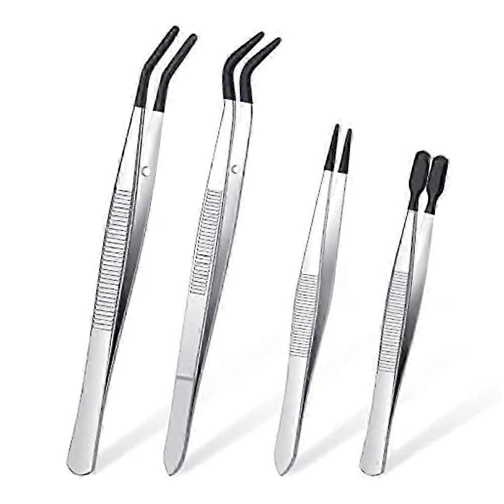 4 Pieces Tweezers Set with Rubber Tips Tweezers PVC Coated Tweezers, Rubber Fine Point Tweezers Rubber Flat Tip Tweezer