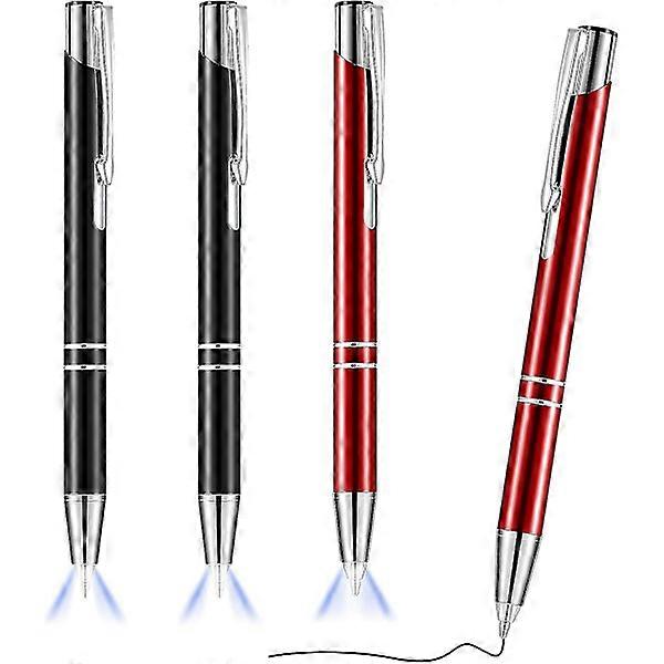 4 Pcs Luminous Tip Pen Ballpoint Pen with LED Light Pen with LED Flashlight Luminous Pen for Writing in the Dark (Black and Red)