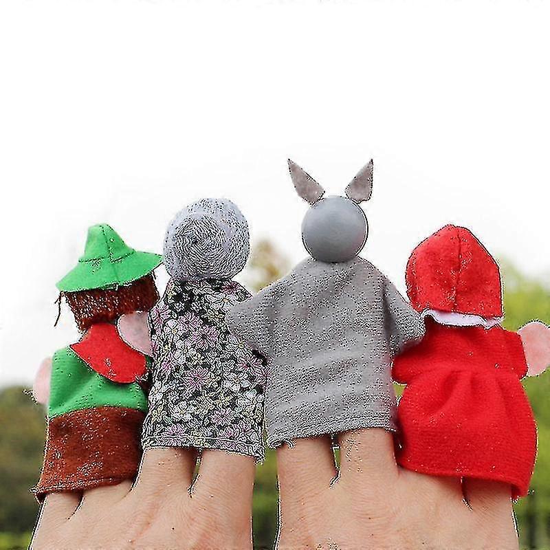 4 Pieces Of Children's Finger Puppet Doll Plush Toy Little Red Hat Wood
