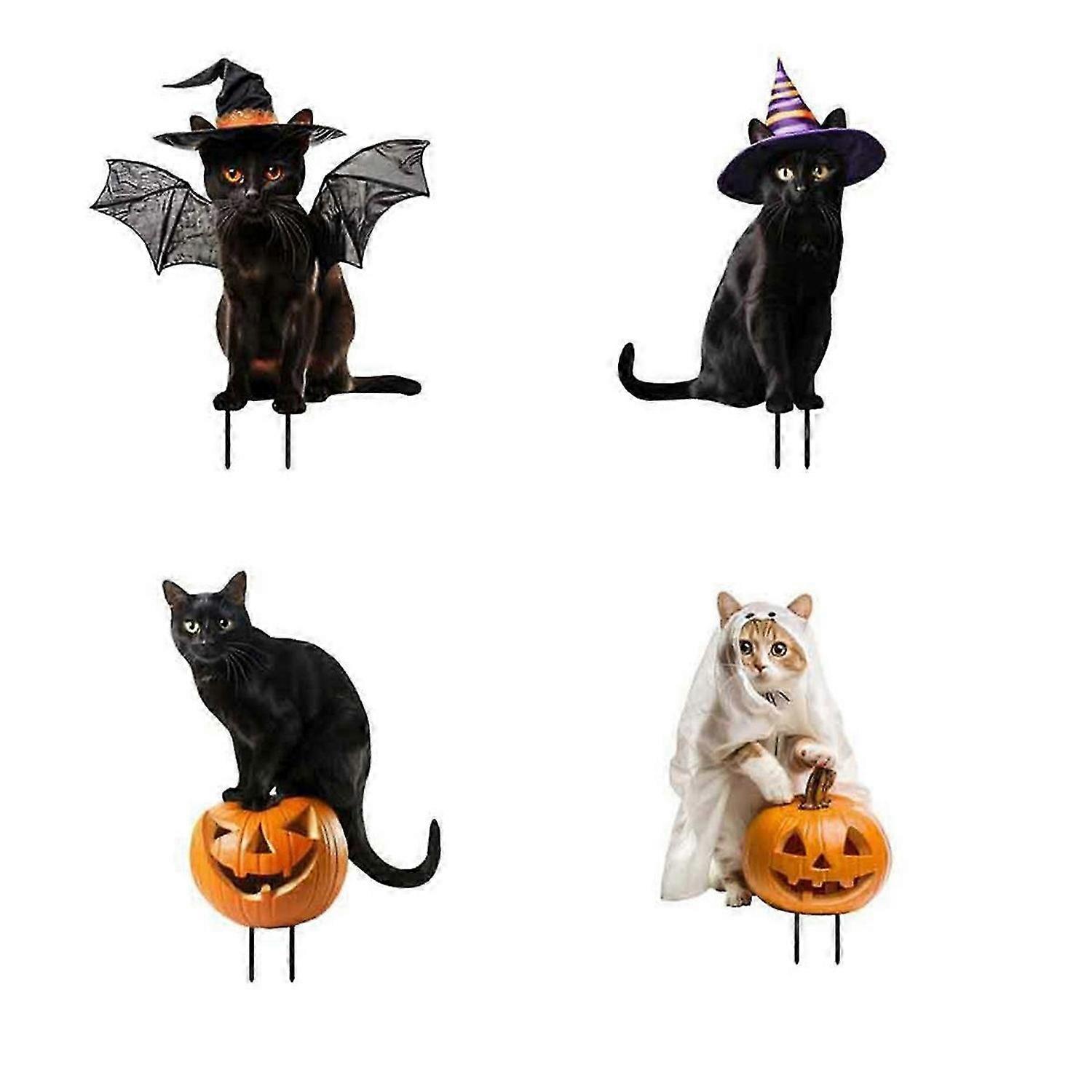 4PCS Halloween Decorations Outdoor Cute Cat Yard Sign Metal Cat Decor