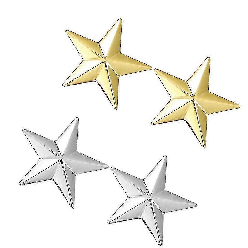 4pcs Alloy 3d 5 Point Silver Golden Star Brooch Lapel Shirt Collar Pin