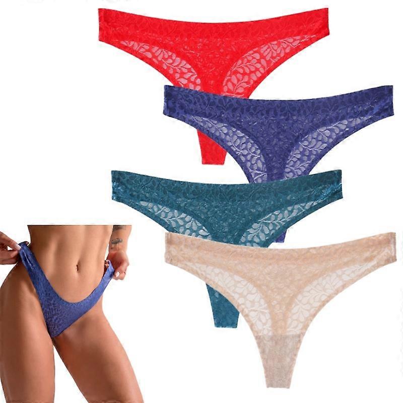 4PCS Women's Pure Cotton Sexy Jacquard Seamless Adhesive T-shaped Underwear