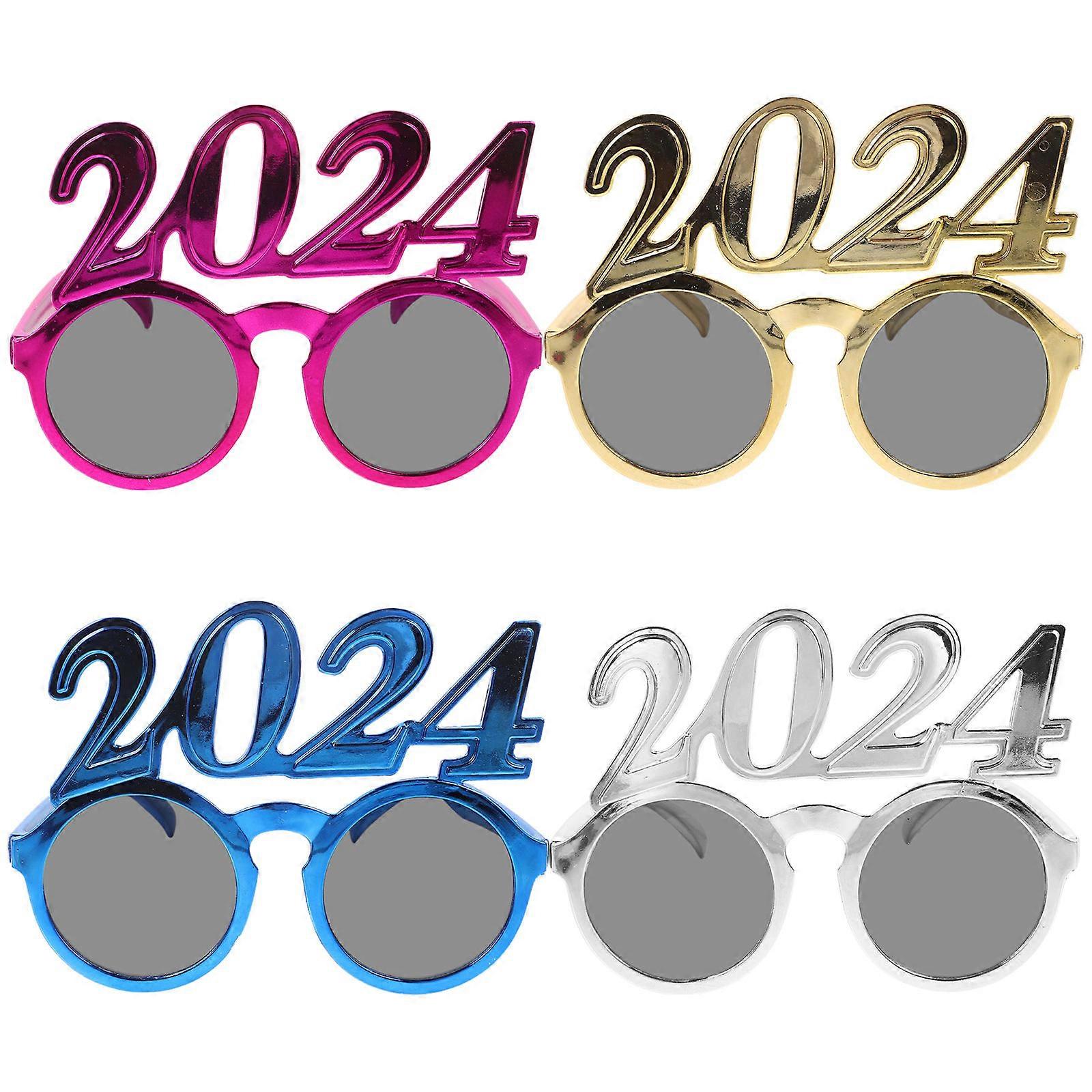 4pcs Festive Eyeglasses for Year Party – Lightweight Gold, Silver, Rose & Blue Fun Photo Booth Props for New Year’s Eve Celebration