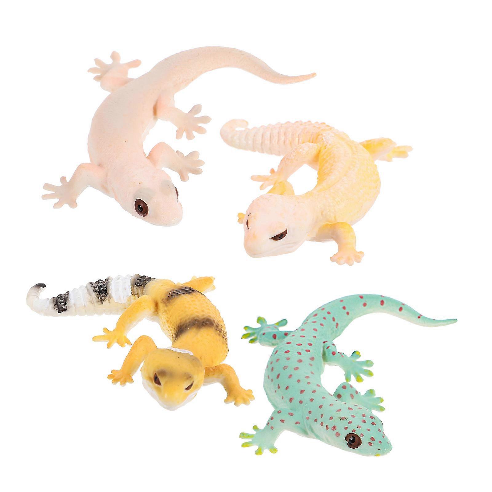 4pcs Mini Gecko Models Realistic Animal Educational Lizard Figurines for Playroom Decor & Learning Tools