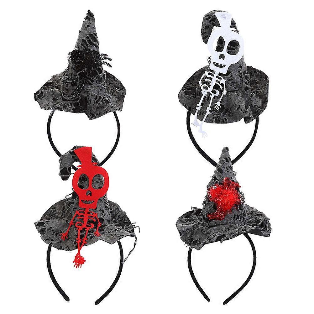 4pcs Halloween Hair Hoops Skull Pattern Hair Band Fashion Hat Headdress Decorative Props for Cosplay Costume Party (Black Spider, Red Spider, White Sk