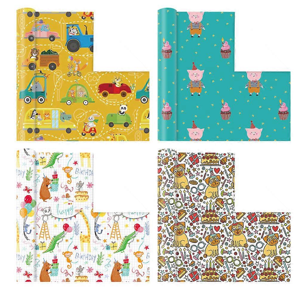 4pcs Cartoon Animal Gift Wrapping Paper – Durable, Smooth, for Birthdays, Parties, DIY Crafts, Weddings, and Special Occasions