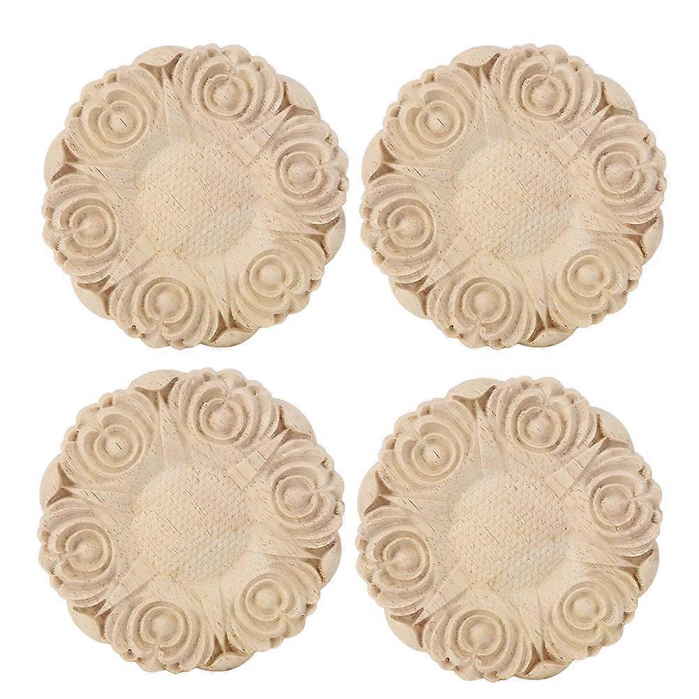 4Pcs 10cm Round Shape Wood Carving Applique for Home Furniture Cabinet Decoration Ornament