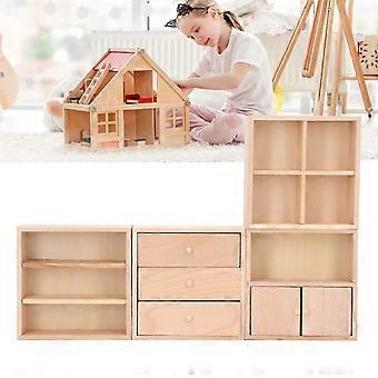4 Pcs 1/12 Doll House Cabinet Set Simple Design Practical Lifelike Miniature Wooden Dollhouse Furniture Cabinet