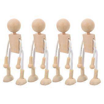 4 Pcs DIY Unfinished Dolls Shapable Wooden Robot DIY Educational Toys Painting Craft Desktop Ornament Gift for Home Kids (Light Yellow)