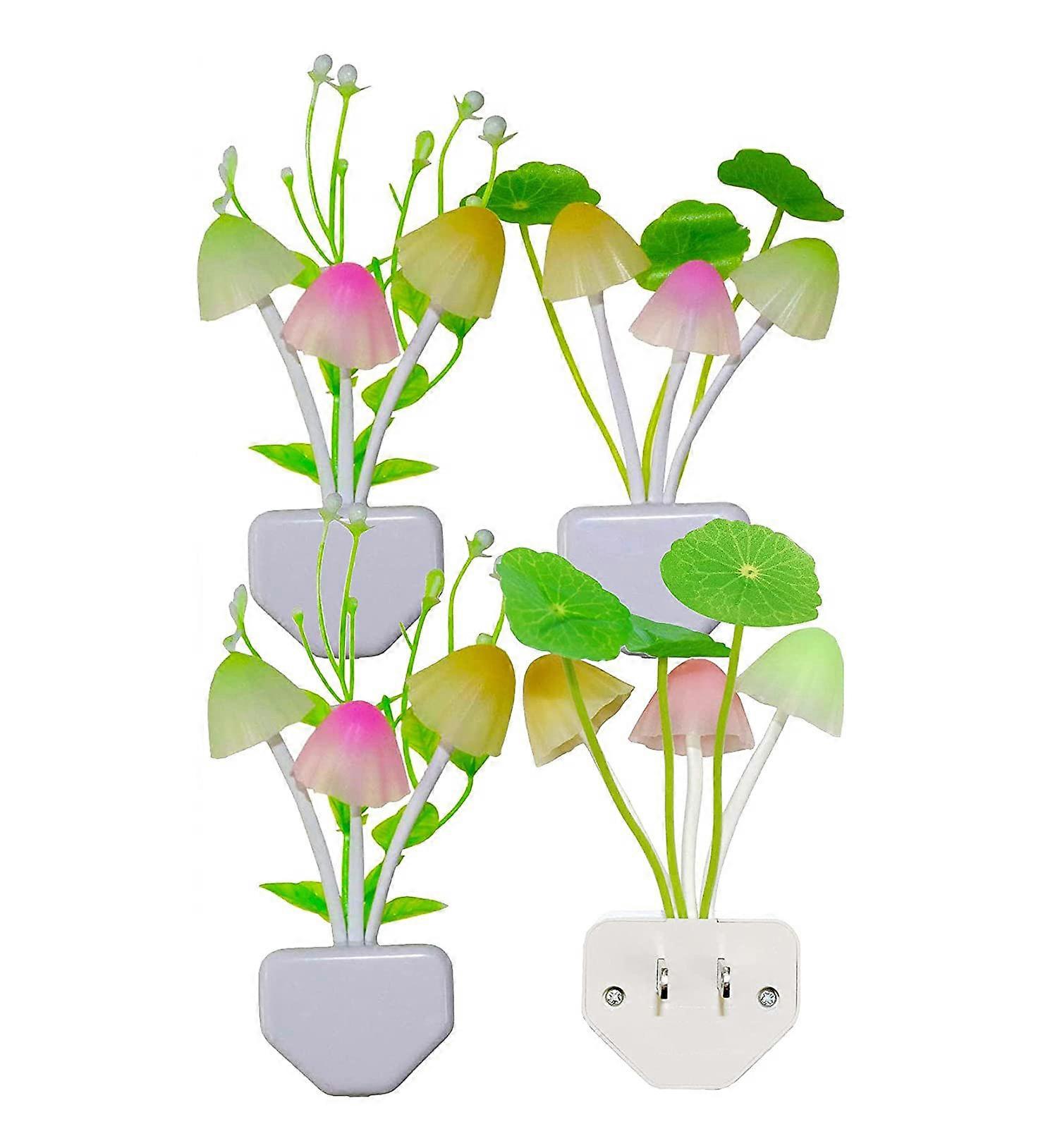 LED Mushroom Night Light Brightness: The mushroom night light is soft and warm, not too bright or too dark, and gives you a comfortable feeling. This lamp is more suitable for small children's rooms. Automatic switch: built-in sensitive light sensor, becomes more convenient. The night light switches on at dusk and switches off automatically at sunrise. Extremely low power consumption (lighting 12 hours a day, only 1 kWh per year). The smart sensor gives you a better life. Color changing: 7 colors will change automatically when the light is on (only one light bulb will change color). Cute room decoration. Easy to install: just plug it into the socket. Cute and flexible - all the light is smaller than the palm of your hand, the mushroom and leaf wire can be bent wherever you want. Prepare wherever you need soft light at night, such as baby room, kids room, hallway, bedroom, bathroom, kitchen, living room, corridor, decoration light, stairs, hallway, etc.