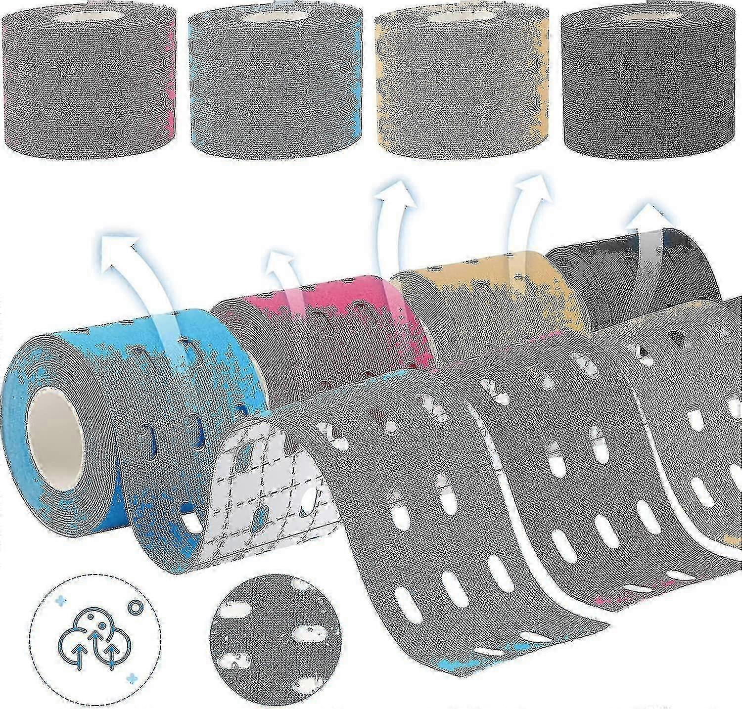 4 Rolls Professional Medical Kinesiology Tape, Perforated Design, Kinesiology Tape For Knees, Shoulders 5mx5cm