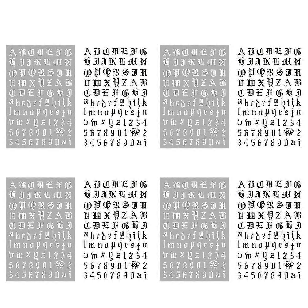 4 Sets Number and Letter Design Nail Patch Fashion Nail Decals Delicate Nail Art DIY Stickers Manicure Tool for Girls Ladies Women(Black and White in