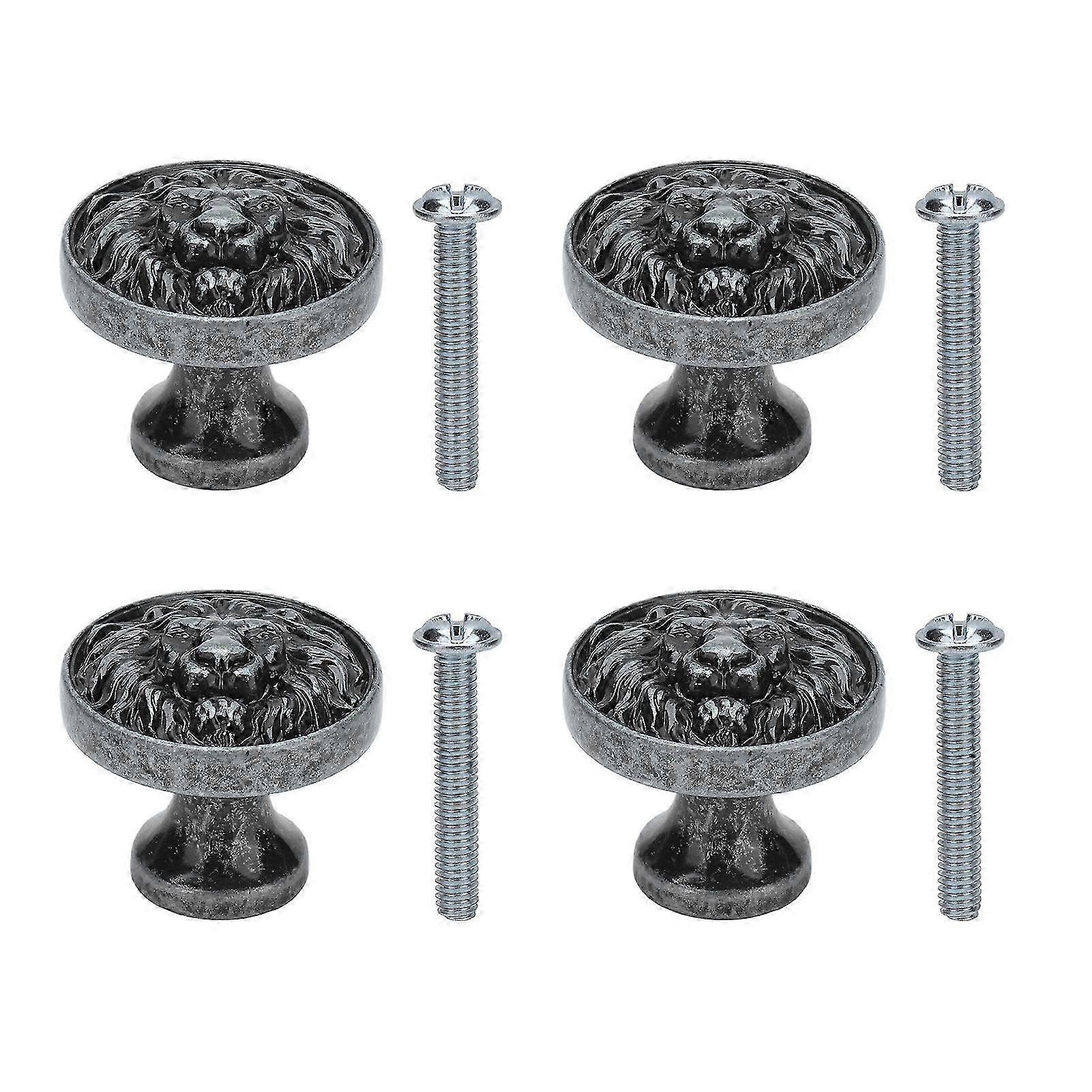 4Set Lion Head Zinc Alloy Cabinet Door Handle Modern Antique Cartoon Solid Drawer Pull Circular Single Hole Buckle Hand399 Lion He SZRH A-YH