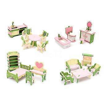4 Set Wooden Dollhouse Miniature Furniture Puzzle Model Children Kids Toys