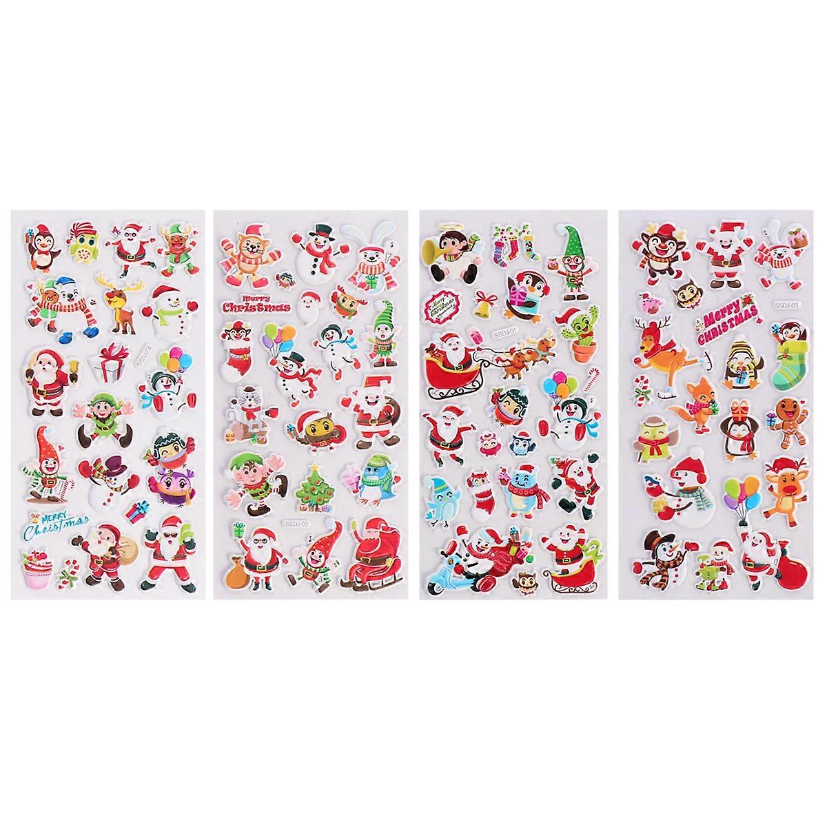 4 Assorted Cartoon Christmas Stickers Removable Snowman, Santa Claus & Holiday Designs for DIY Crafts, Scrapbooking & Decor