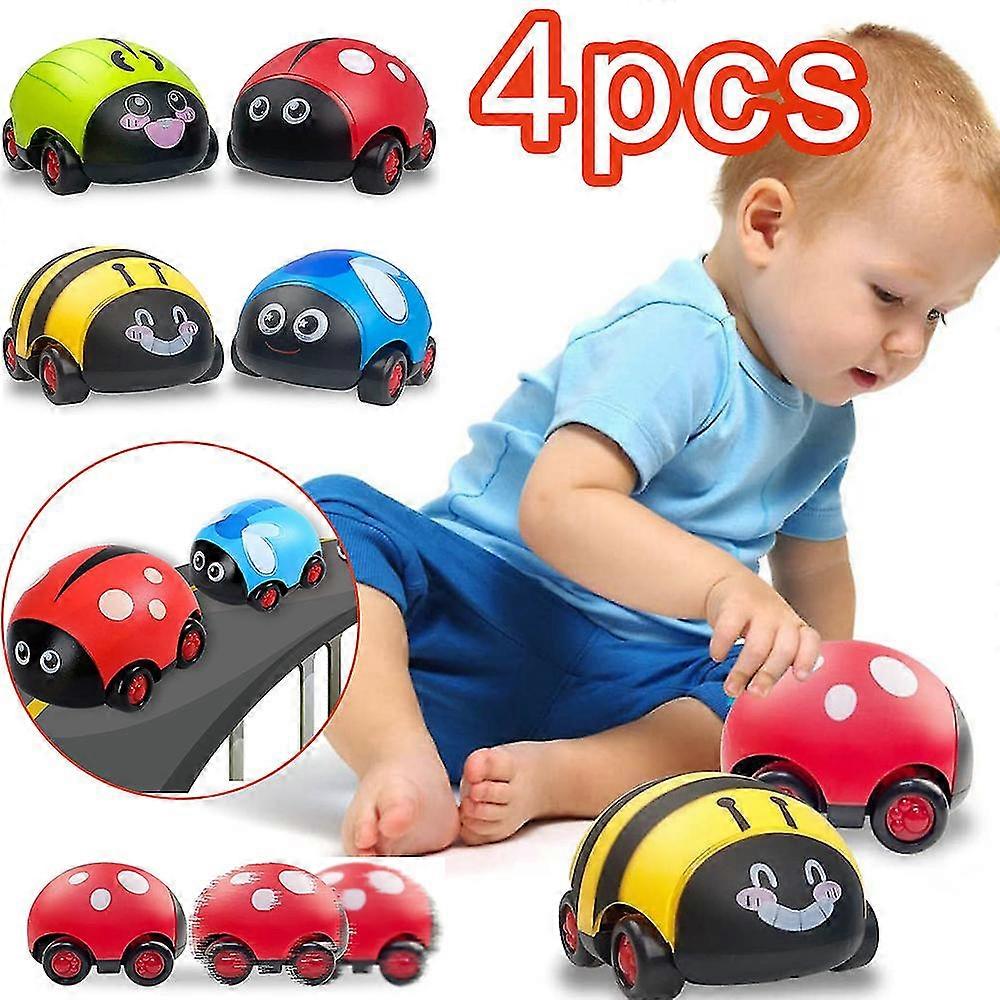 4pcs/set Cartoon Ladybird Inertia Cars Push Go And Pull Back Cars