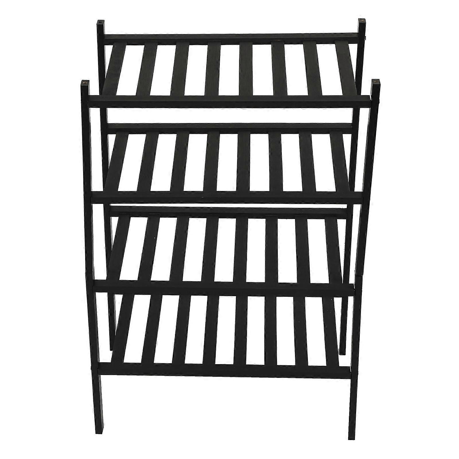 4-Layer Black Bamboo Shoe Rack Stackable Closet Organizer