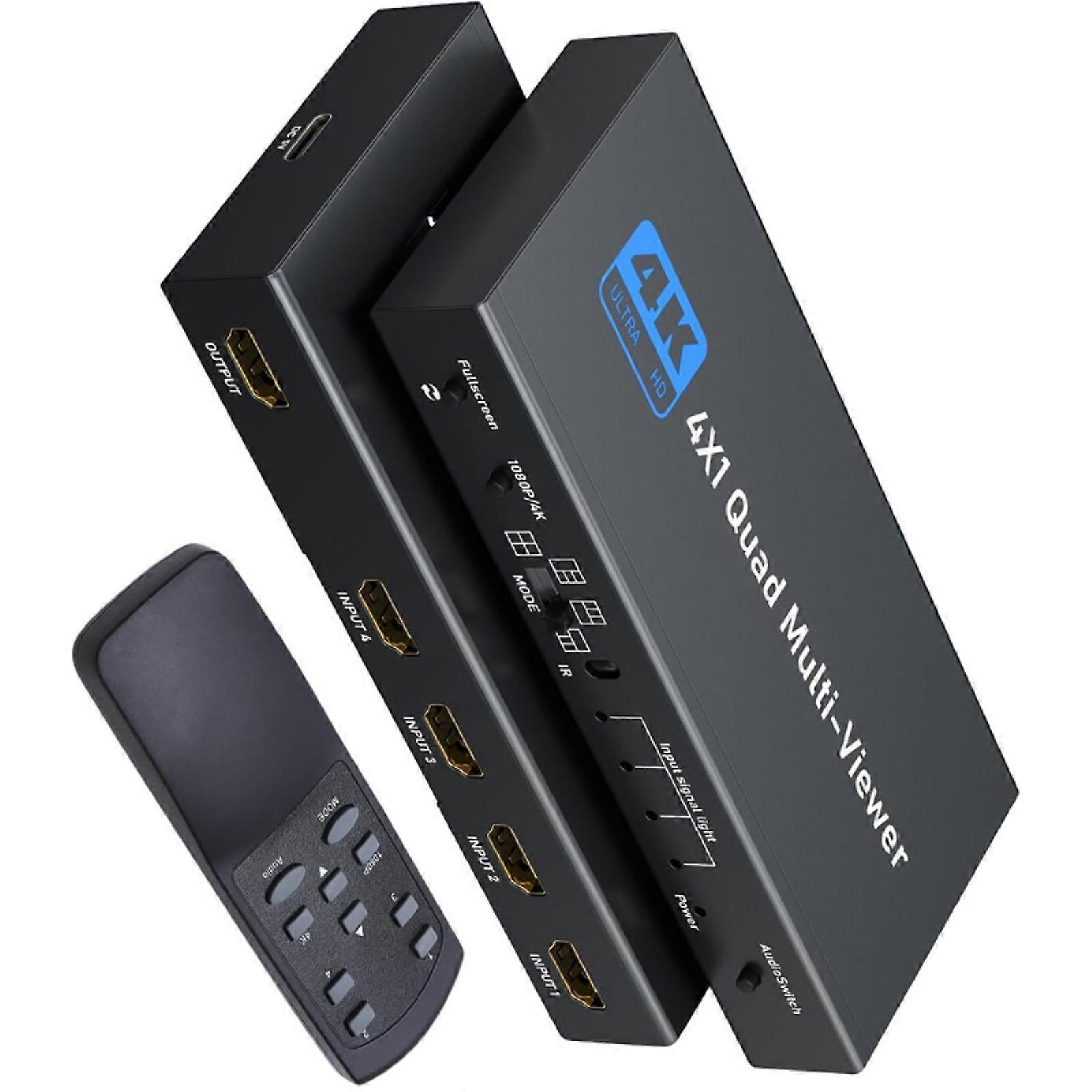 4-Port HDTV Switcher Box with 4K UHD Seamless Transition Remote Controller for Home Theaters Black Multicolor