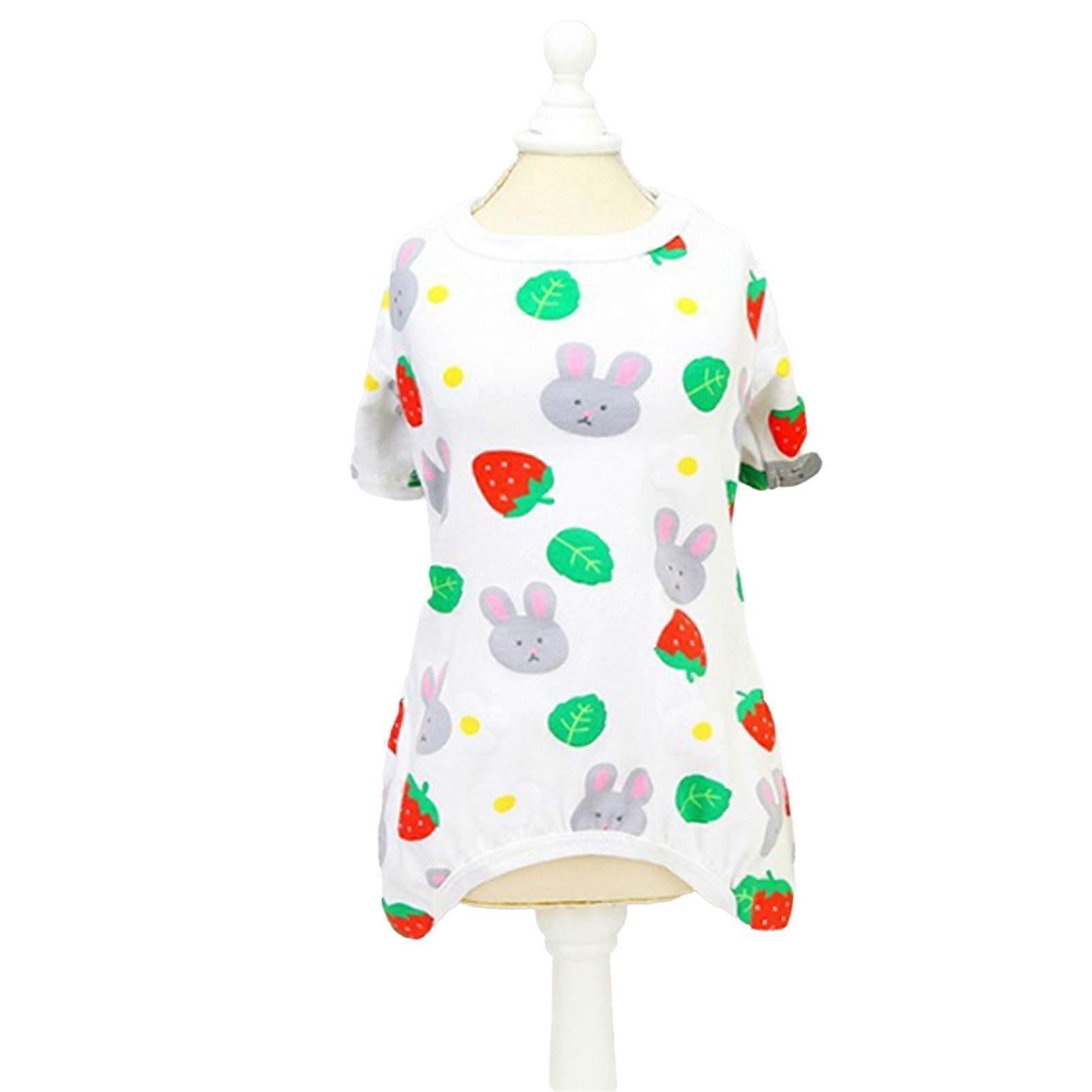 4 Legs Dog Pajamas Lightweight Breathable Strawberry Rabbit Pattern Dog Jumpsuit for Small Dogs Teddy Chihuahua Yorkie White XL