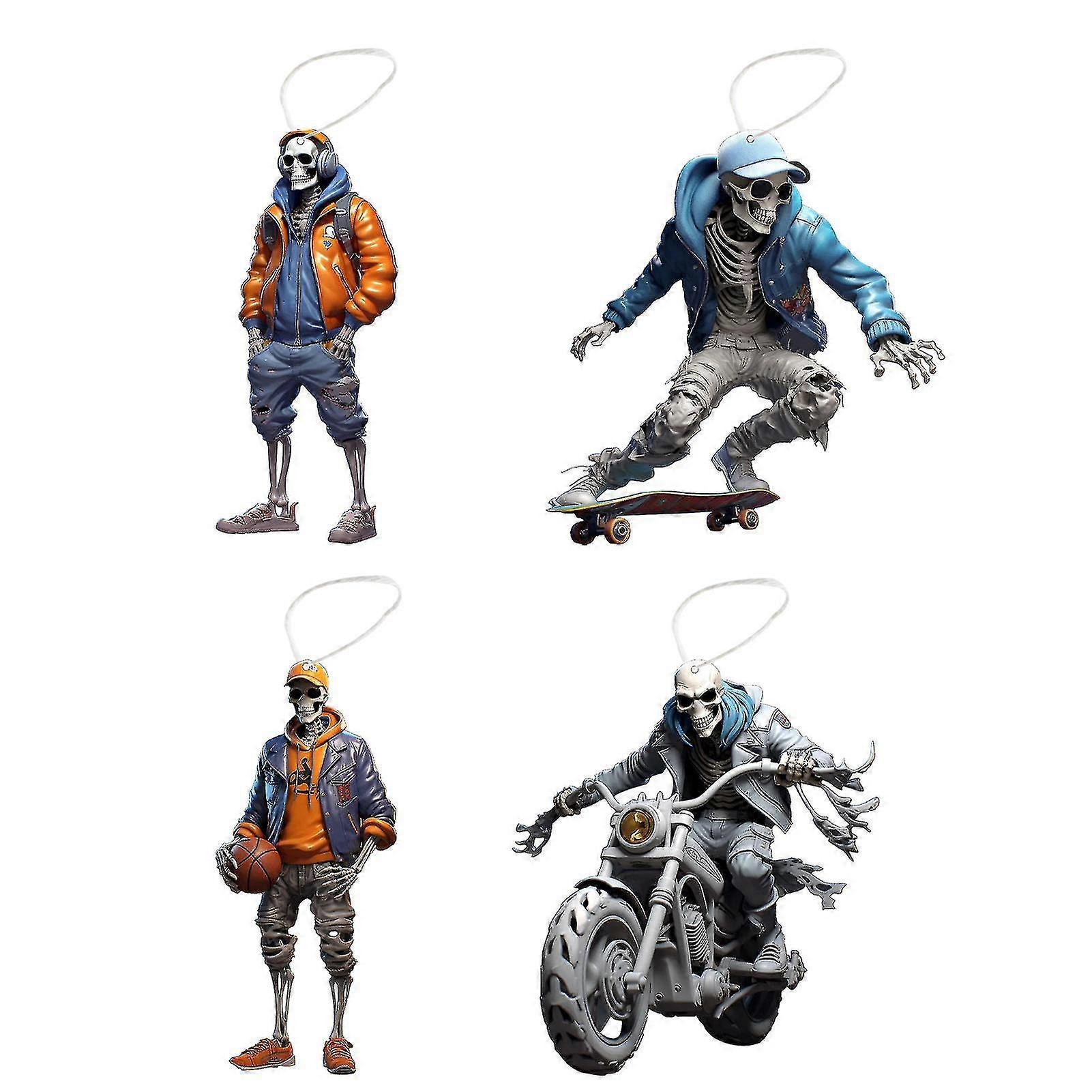4pcs Swinging Skull Car Pendant Hanging Cool Rearview Mirror Home Ornament Gifts