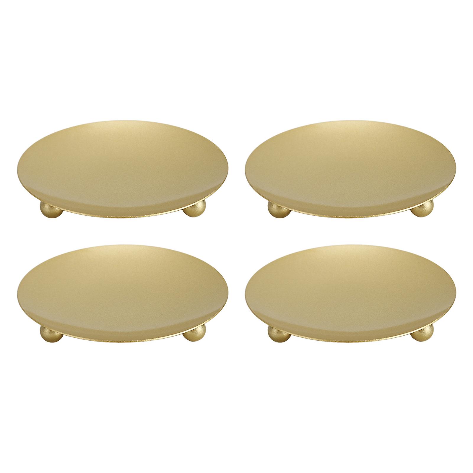 4Pcs Metal Candle Plate Gold Color Stable Sturdy Feet Large Space Gold Candle Holder for Bedroom Office Cafe