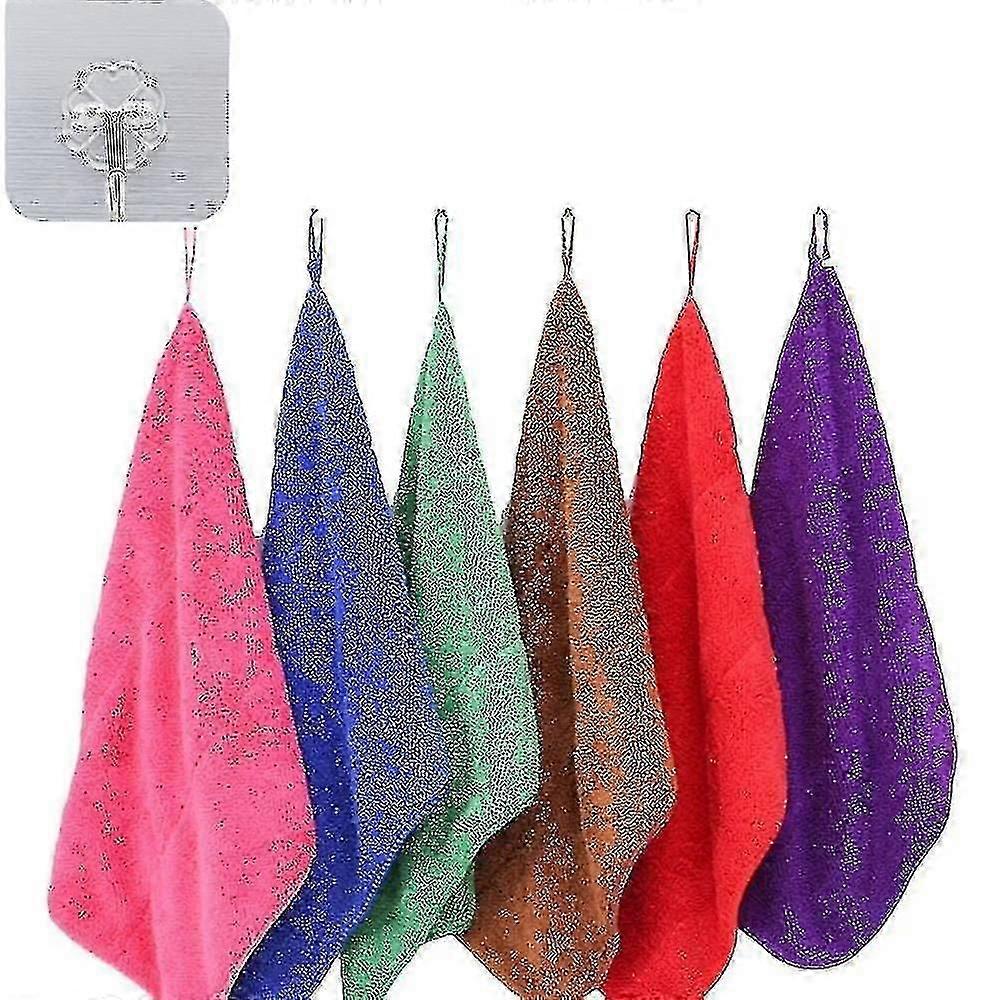 (40 X 30 X 0.2cm, With Hooks)6pcs Hanging Hand Towels Coral Microfiber Fleece Hand Towels For Kitchen