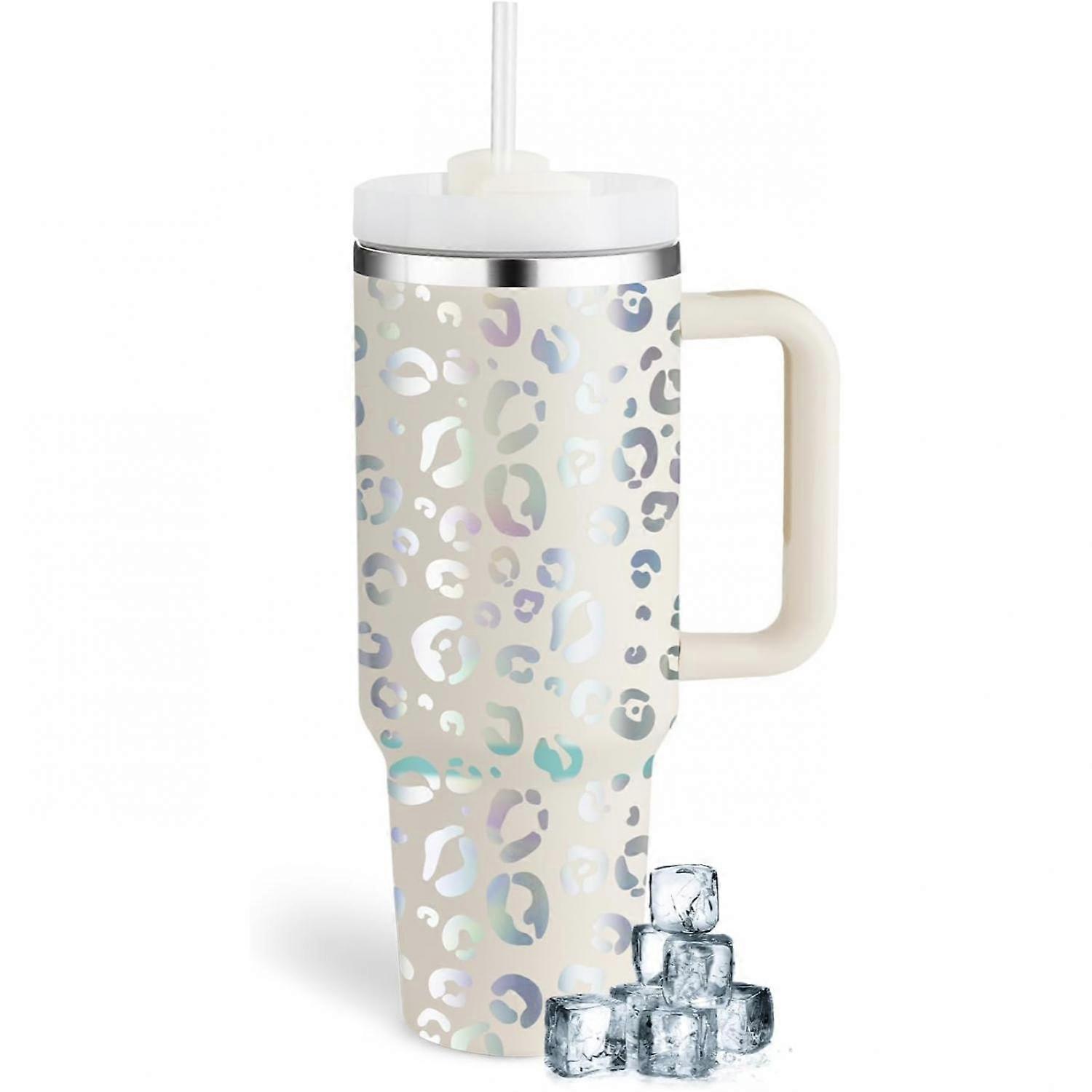 40 oz Tumbler Leopard Print with Handle Lid Straw Insulated Stainless Steel Vacuum Coffee Travel Cup Holder Friendly Keep Drinks Cold Gifts for Lover