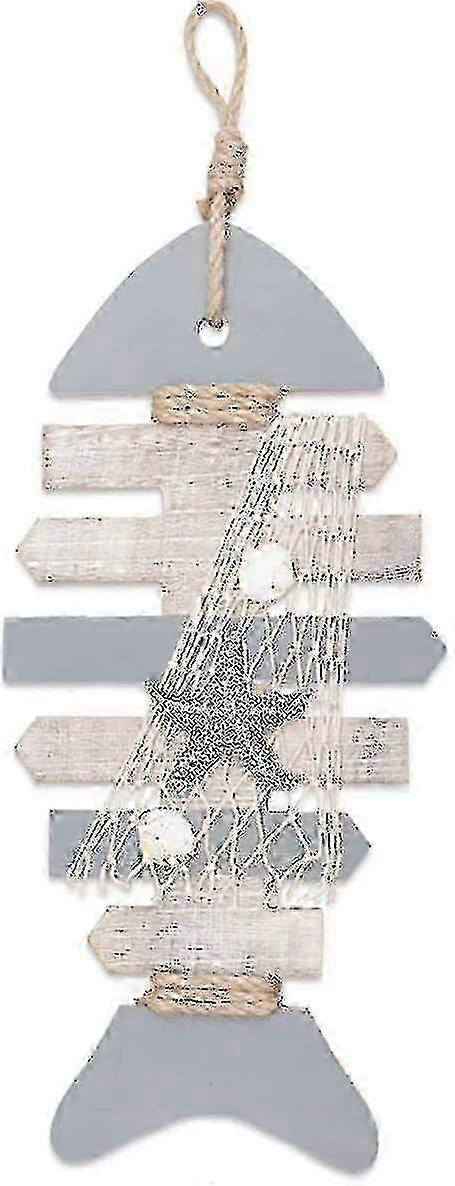 40 Cm Wooden Fish Skeleton With Starfish And Seashells For Nautical Decoration, Wall Decor Door Hanging Ornament Beach Theme Home Decoration.