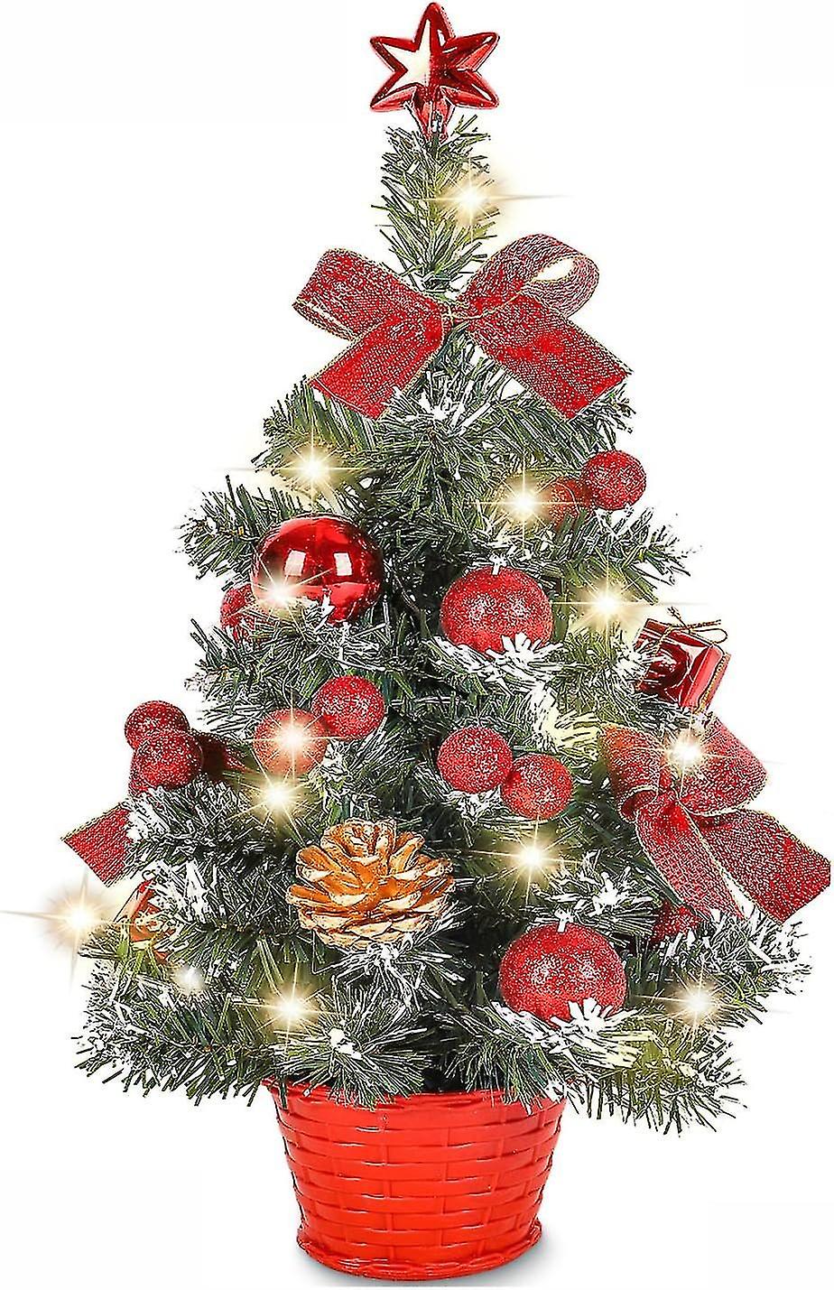 40CM Mini Artificial Christmas Tree, Small Christmas Tree with LED Lights, Mini Desktop Tree Decorat