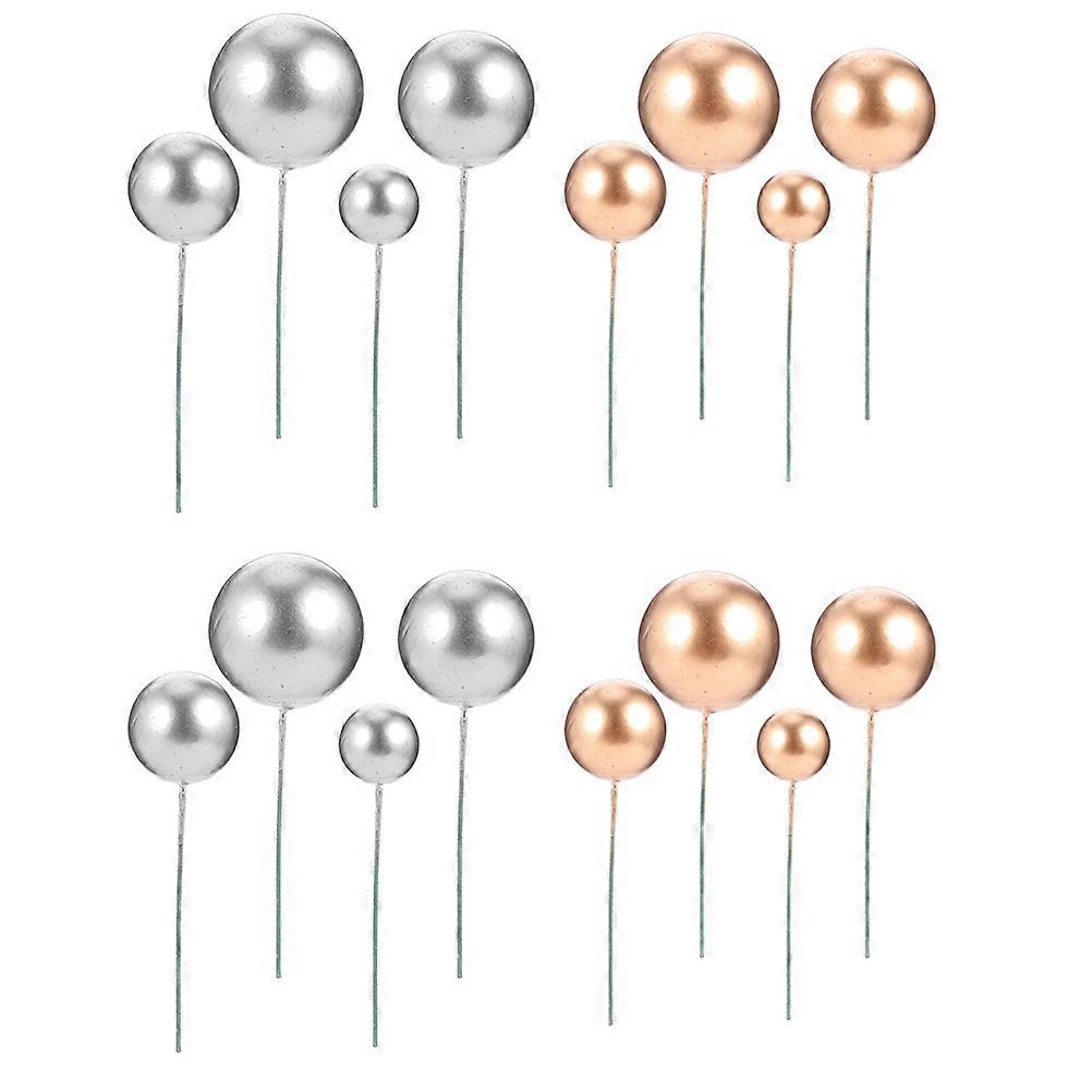 40Pcs Round Ball Cake Toppers Simple Ball Shaped Cake Ornaments Golden, Silver