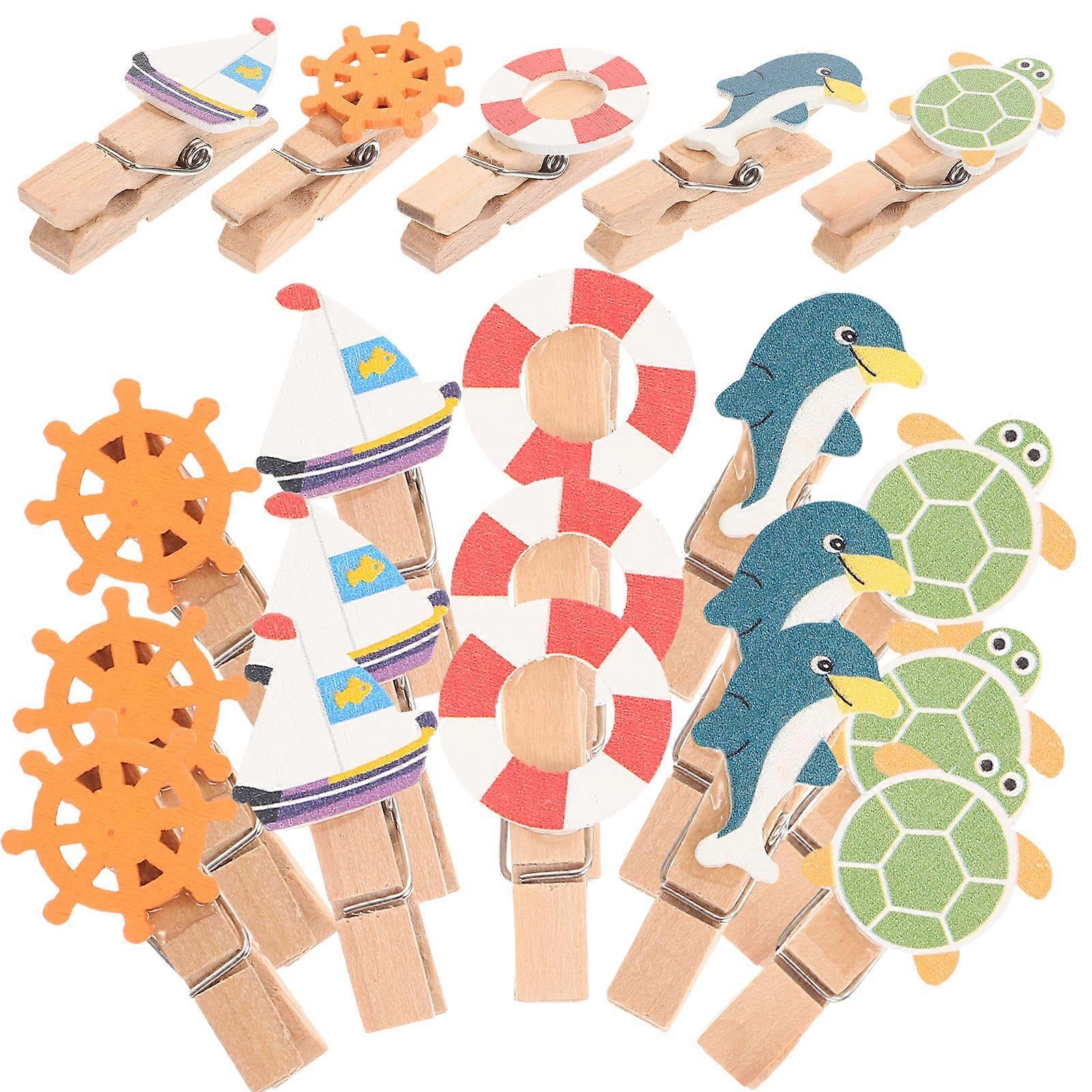 40pcs Mini Ocean Theme Wooden Clips Decorative Photo Holders