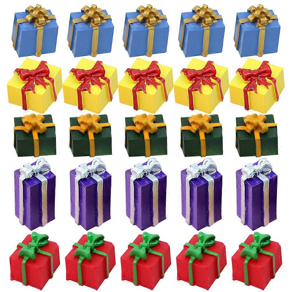 40pcs Christmas Miniature Ornaments Small Resin Christmas Gift Box Decoration Mixed Style