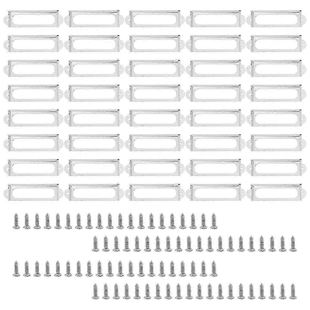 40 set Office Library File Drawer Cabinet Card Tag Label Holder Metal Frame (Silver Tone)