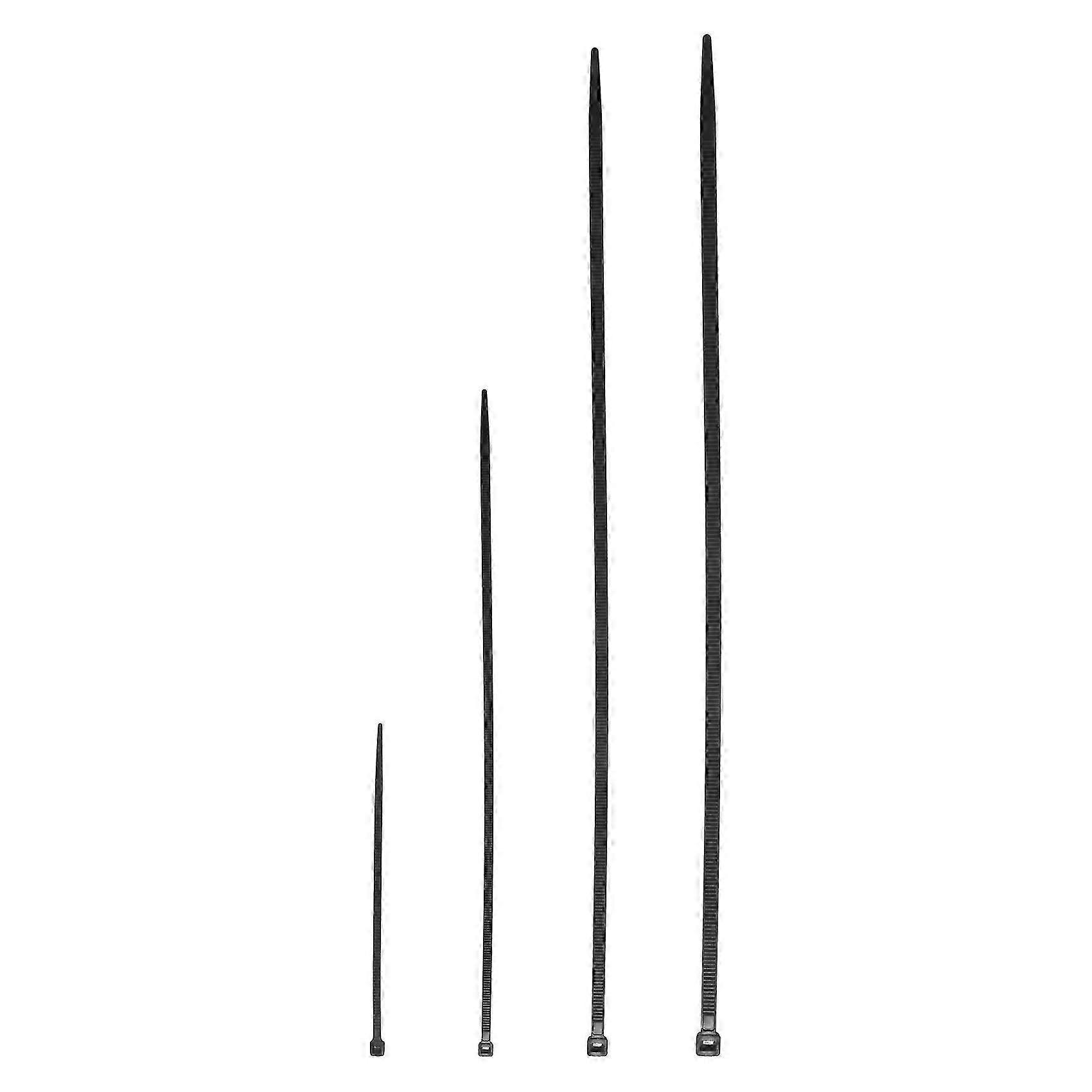 1. Stand low to high temperatures ranging from -40Celsius to 85Celsius,difficult to break and release,Weather resistance and long service life,Tensile Strength 8kg-22kg 2. Designed to fasten tapered ends with locked teeth,locking teeth stop cable tie at desired length, excess can be trimmed 3. These Premium tie wraps are manufactured from strong, flexible high quality material which are non-, non-retardant and halogen free 4. Heavy duty cable ties are perfect for your home, office, garage, travel and workshop tidy,It is an indispensable choice for your weight: 367g colour:Black Material:nylon Package Contents: 100 x Zip Ties 2.5x100mm 100 x Zip Ties 2.5x200mm 100 x Zip Ties 3.6x300mm 100 x Zip Ties 4.6x300mm Only above package content, other products are not included. Note: Light and different displays may cause color of item in picture a little different from real thing. The measurement allowed error is +/- 1-3cm.