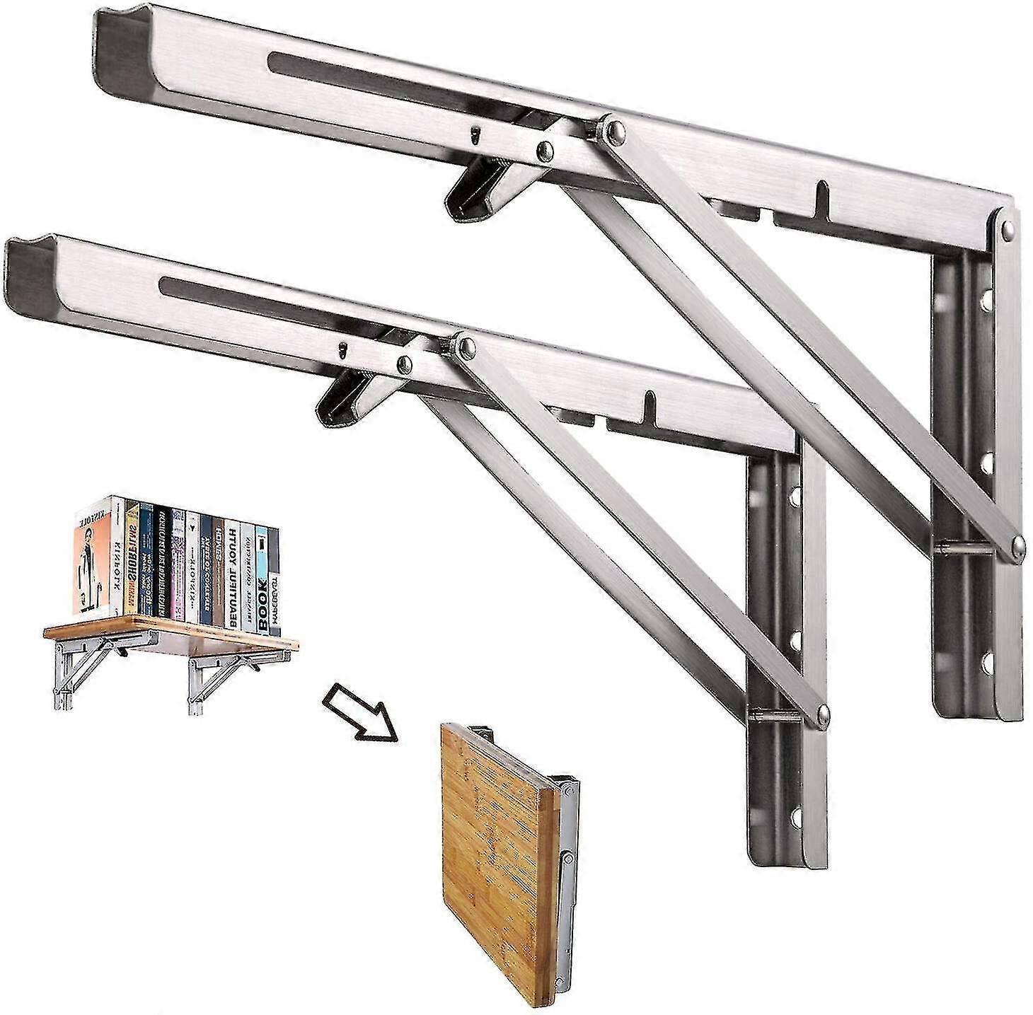 400mm Folding Wall Shelf, 2 Pieces Stainless Steel Folding Console Bracket, Garage Shelf Bracket Frame, Heavy Duty Bracket For Kitchen, Bedroom Qyroad