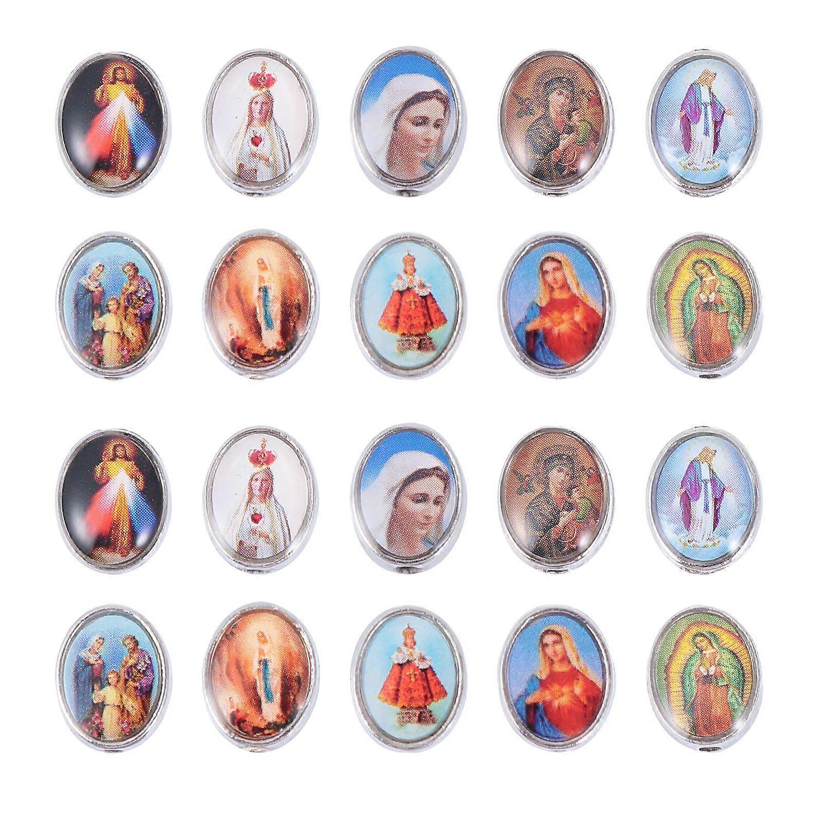 Description The item is someround hole fittings for do a DIY of jewelry such as bracelet or necklace.The religious figure on these drip-shaped stickers jewelry accessories is the Catholic Virgin Mary and others, which has a strong religious atmosphere. These accessories are made of alloy and are durable. Features -Color: Random. -Material: Alloy. -Size: About1.00X0.70X0.50cm/0.39X0.28X0.20inch. -Made of durable alloy material, they can serve you for a long time. -A simple design will add some embellishments to make your jewelry stand out from the crowd. -This retro religious accessory uses the classic images of the Virgin Mary and others. -There are many different styles of patterns to meet your different needs. -DIY jewelry is very suitable for attending some religious ceremonies and scenes.Package list: 40 x jewelry accessories