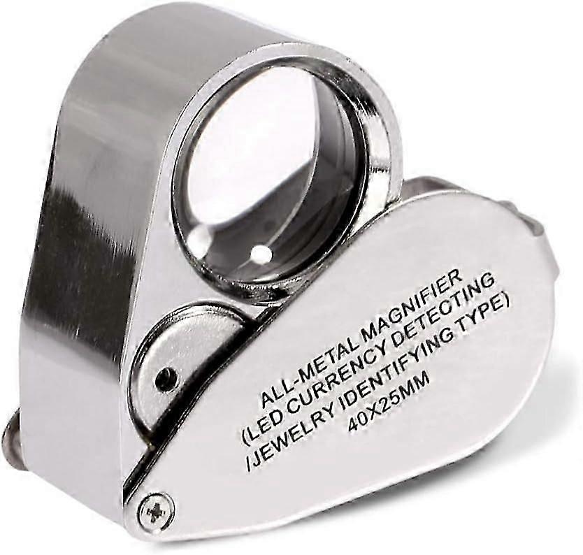 40x Jewelers Loupe Folding Magnifying Jewelry Eye Magnifier With LED Light Illuminated (LED Currency Detecting/Jewelry Identifying Type Lupe)