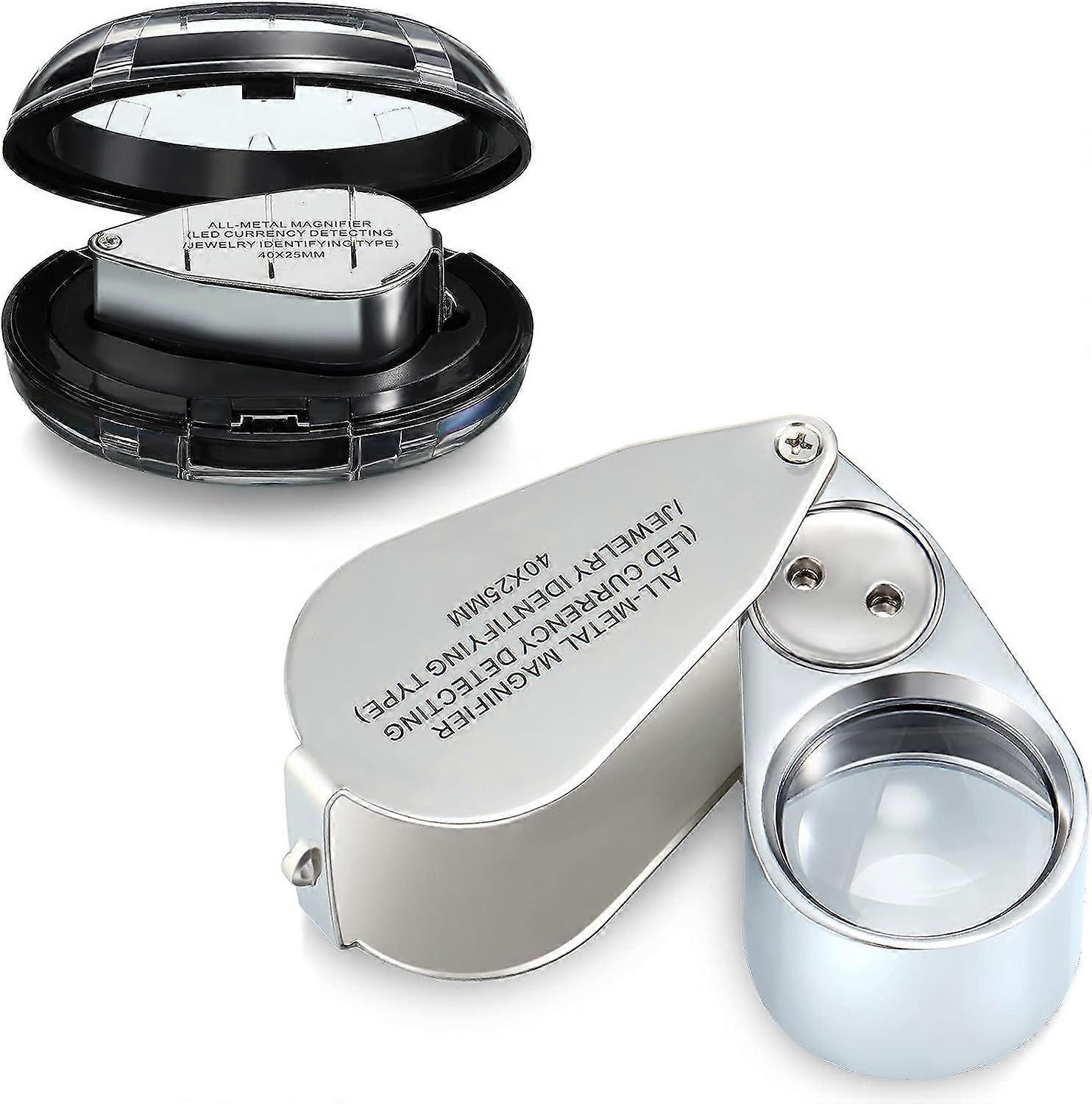 40X Metal Illuminated Jeweler's Magnifier Jewelry Loupe Foldable Pocket