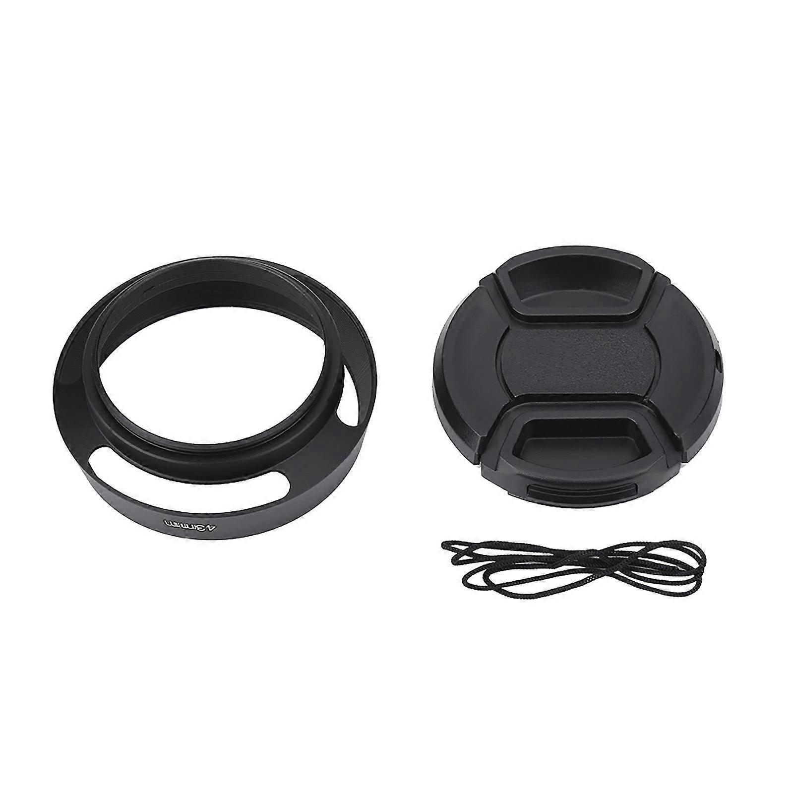 43mm Black Metal Lens Hood with Plastic Lenses Cap for Leica Photography Accessory