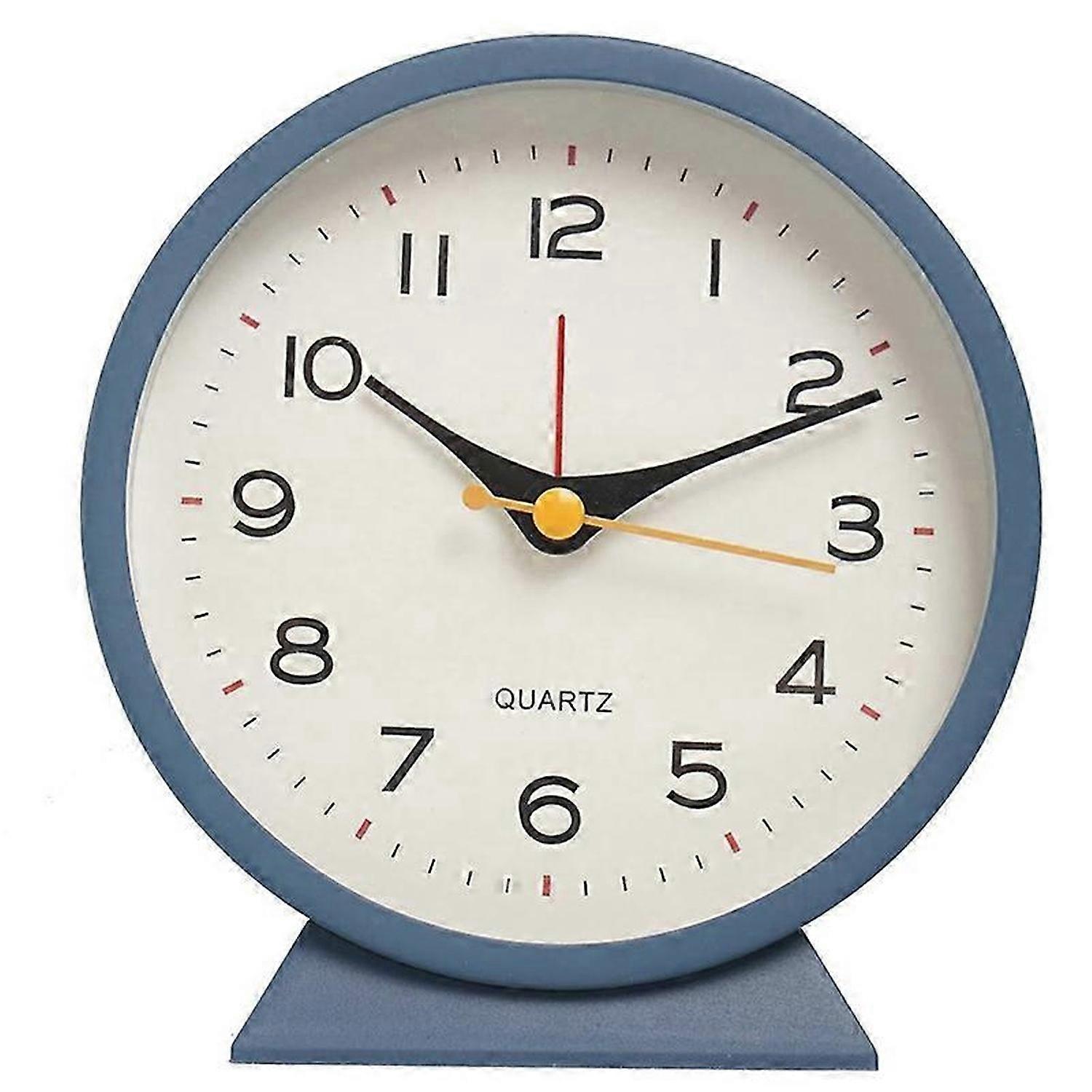 4.5 Inch Battery Operated Antique Retro Analog Alarm Clock, Small Silent Bedside Desk Metal Clock wi