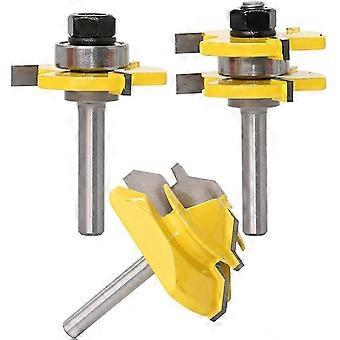45 Degree Lock Miter Router Bit + Tongue Drill Bit + Groove Cutter 8mm Handle