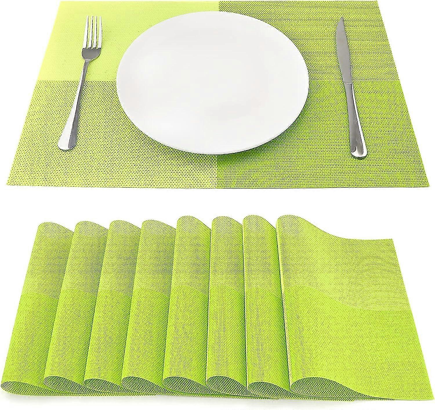 45cm * 30cm, Green Set Of 8 Vinyl Placemats Wear Resistant Heat Resistant, Woven For Kitchen Placemats