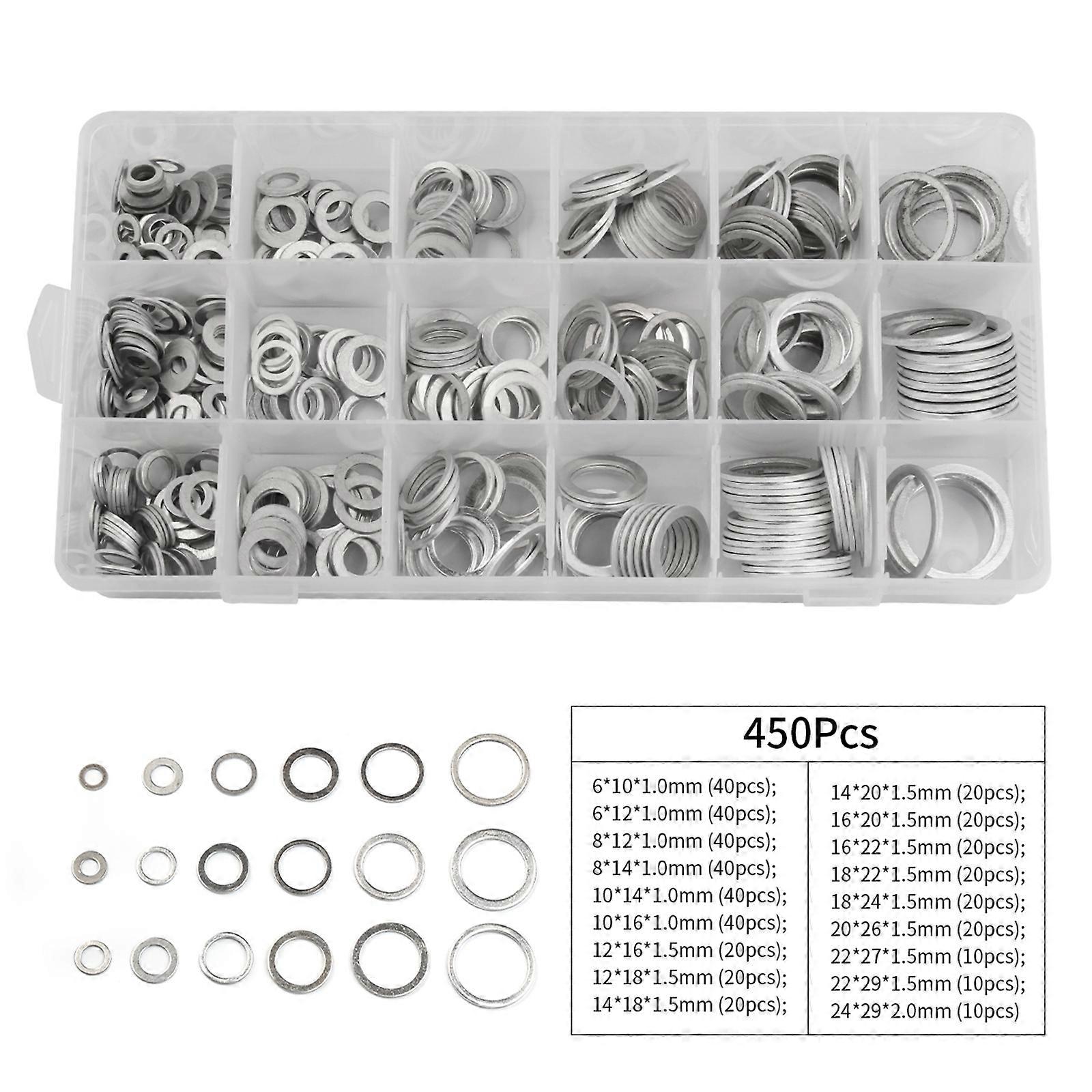 450PCS Oil Drain Plug Aluminum Washer Gasket Washer Sealing Ring Assortment New FT