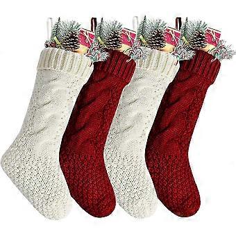 46CM Unique Burgundy and Ivory White Knit Christmas Stockings 2Pack/4 Pack
