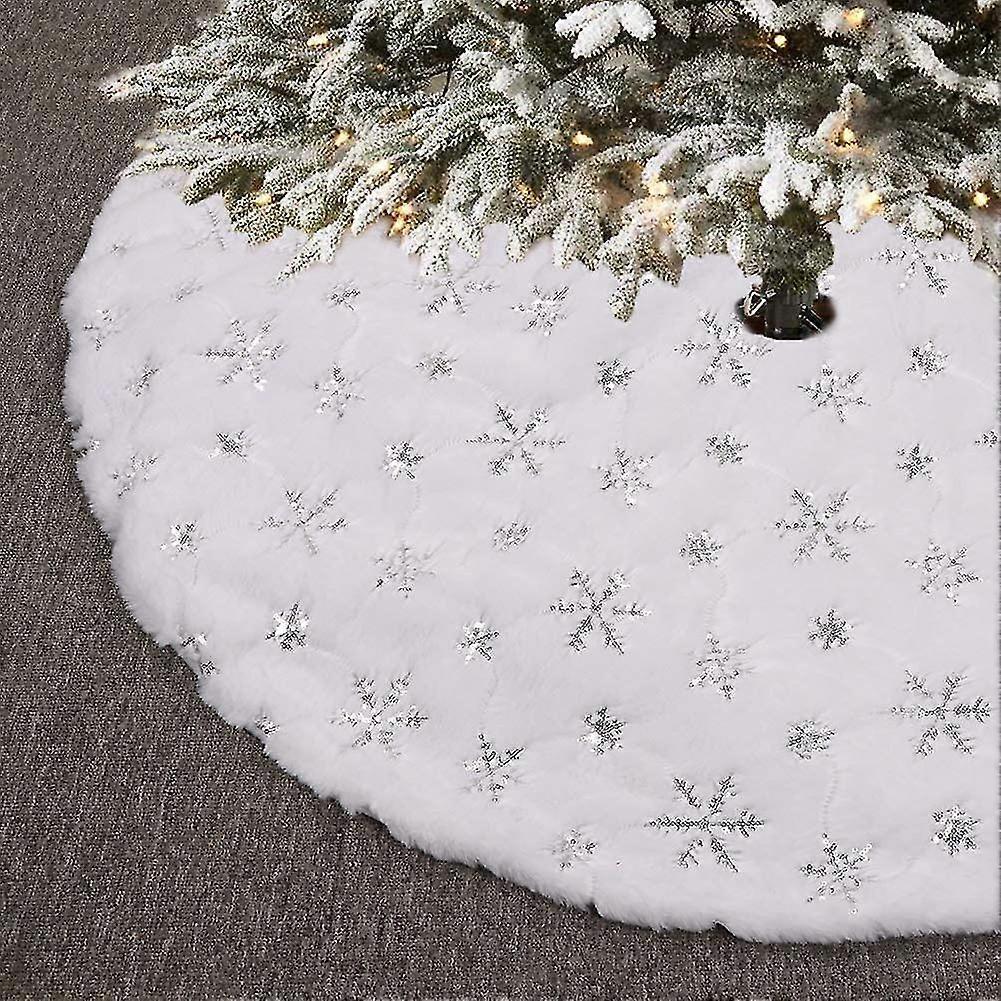 48 Inch White Christmas Tree Skirt Faux Fur Silver Large Fur Tree Skirt