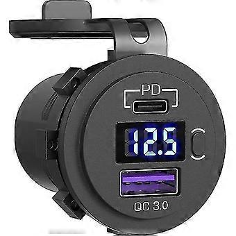 48w Usb C Car Charger Socket, 12v/24v Pd&qc 3.0 Car Socket With Led Voltmeter And On/off Switch Fast Car Charger